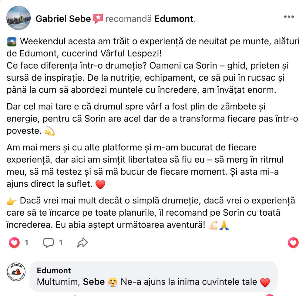 ☝️ Dacă ai nevoie să-ți cumperi echipament, te rugăm să citești articolul “Echipamentul pentru Drumeții pe Munte în sezonul cald“. El o să te învețe ce să iei și ce să nu iei.