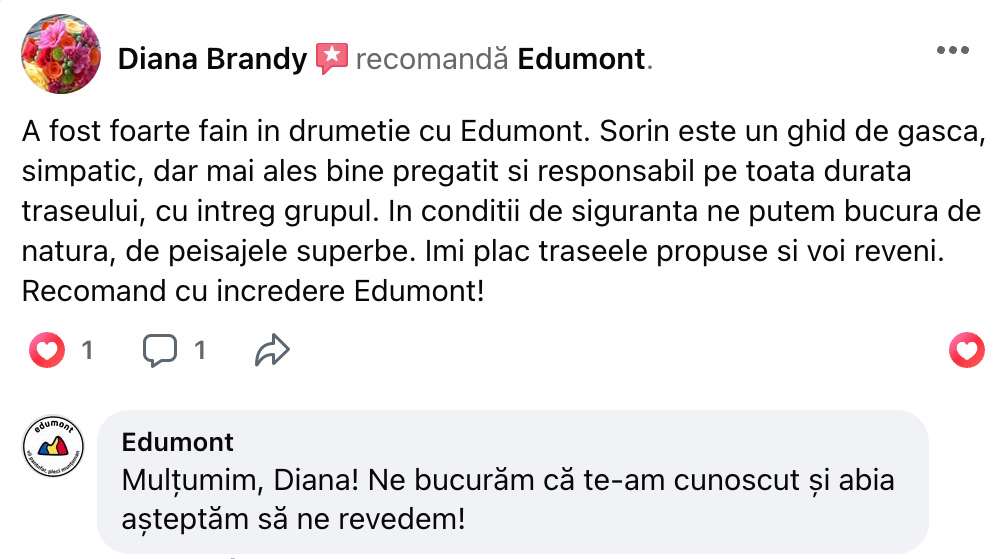 ☝️ Dacă vii cu mașină personală și iei cu în ea colegi de drumeție, vei primi de la fiecare 120 RON pentru că îi duci și îi aduci de la munte.