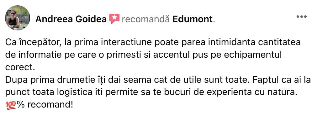 ☝️ Dacă ai nevoie să-ți cumperi echipament, te rugăm să citești articolul “Echipamentul pentru Drumeții pe Munte în sezonul cald“. El o să te învețe ce să iei și ce să nu iei.